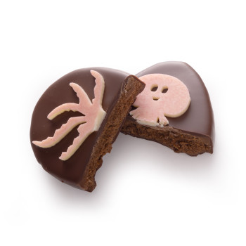Notre malicieux Chipiron renferme un praliné nature onctueux, élaboré à partir d’amandes et de noisettes finement torréfiées, qui développe des arômes riches et équilibrés.